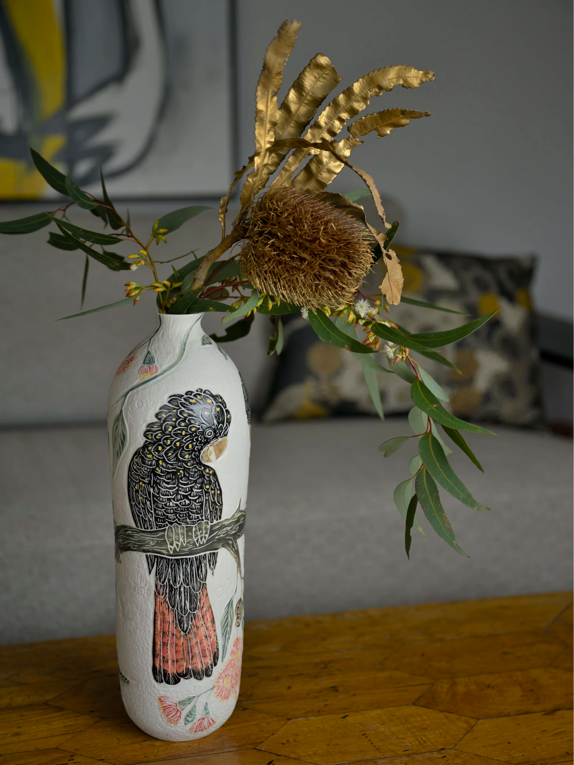 Sunday 28 September — a free two-day celebration of creativity, music, light, and nature. I’m excited to be one of the featured artists, creating a crop circle artwork inspired by my black cockatoo porcelain vases and the native flora they call home.