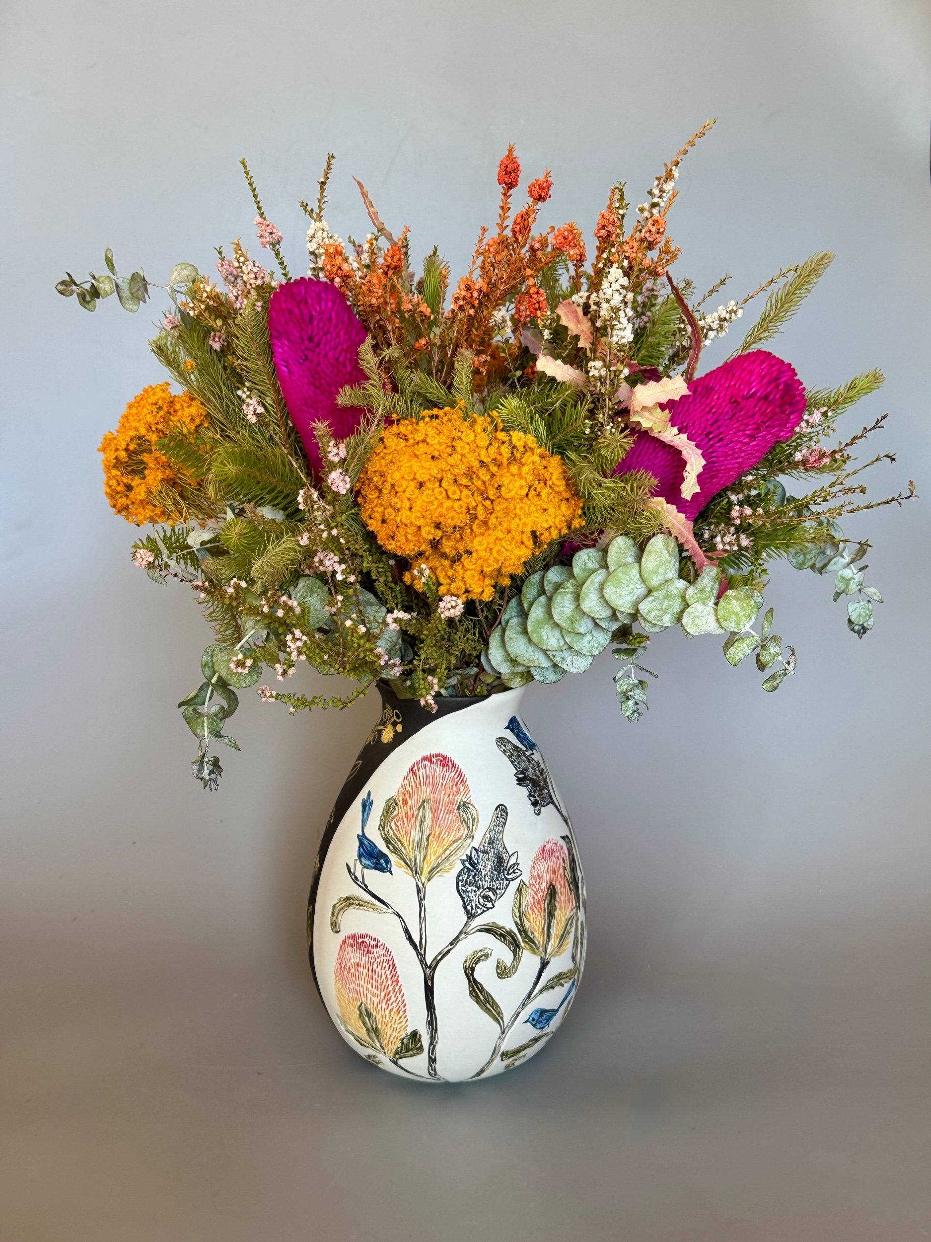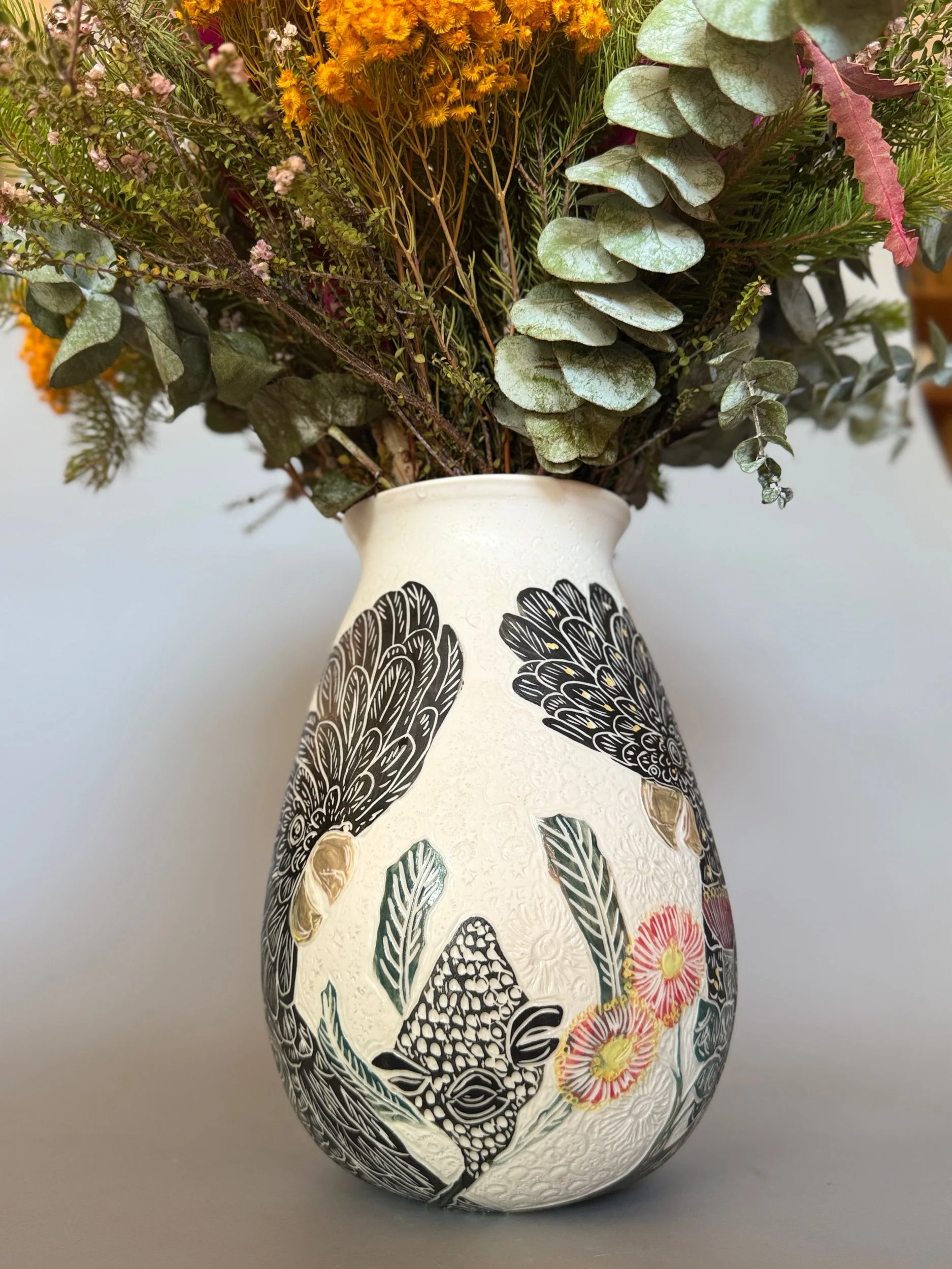 Bespoke Pieces Categories: All Bespoke Pieces Custom Order Gift Voucher Homeware Tableware Workshops All / All Bespoke Pieces Custom Order Gift Voucher Homeware Tableware Workshops Quick View Golden Wattle Vase $490.00 Quick View Splendid Fairy Wren Platters from $140.00 Sale Quick View Large Red Tail Black Cockatoo Serving Platter Sale Price: $252.00 Original Price: $280.00 Sold Out Quick View Red Tail Black Cockatoo Serving Platter Sale Price: $270.00 Original Price: $300.00 Sale Quick View Australian Ringneck - Sgraffito plates from $65.00 Quick View Australian Ringneck - Oval Platter and Bowls from $65.00 Quick View Carnaby's Black Cockatoo - Sgraffito plates from $65.00 Quick View Whispers of the Wild - Where the Red Tails Roam from $120.00 Quick View Whispers of the Wild — Guardians of the Canopy from $120.00 Quick View What Remains Sculptural Porcelain Vessel with Black Cockatoos (Available to order) $2,600.00 Sold Out Quick View Kookaburra birds on Jarrah branch Sale Price: $540.00 Original Price: $580.00 Sale Quick View Banksia Baxteri round vases Sale Price: $230.00 Original Price: $290.00 Sale Quick View Giant Spider Orchid Platters and Nibble bowl Sale Price: $220.00 Original Price: $295.00 Sale Quick View Banksia and wattle $1,250.00 Quick View Large Donkey Orchid Serving Platter and Nibble bowl from $60.00 Sale Quick View "Wild Resilience" - Red Tailed Black Cockatoo Vase $580.00 Sold Out Quick View Wildlife & Wattle Vase $380.00 Sold Out Quick View Cockatoo feather platter $180.00 Sold Out Quick View Carnaby's Black Cockatoo Platter - Small $180.00 Sold Out Quick View Banksia and wattle- Tall- *Available for Order $1,600.00 Sold Out Quick View Banksia story- altered form- *Available for Order $1,450.00 Sold Out Quick View Spring Orchids under Shoak- Vase $500.00 Sold Out Quick View Red Tailed Black Cockatoo Vase $350.00 Sold Out