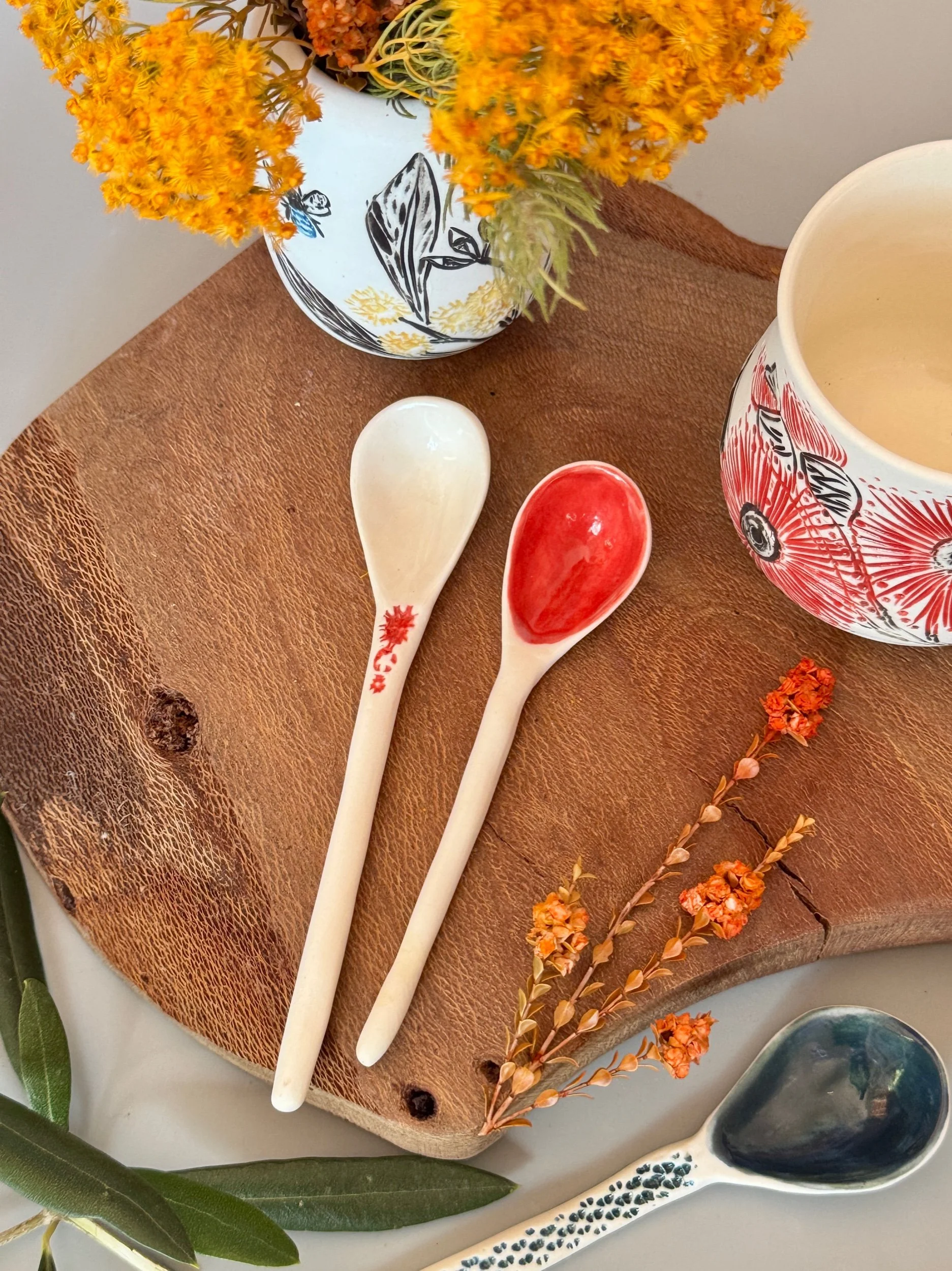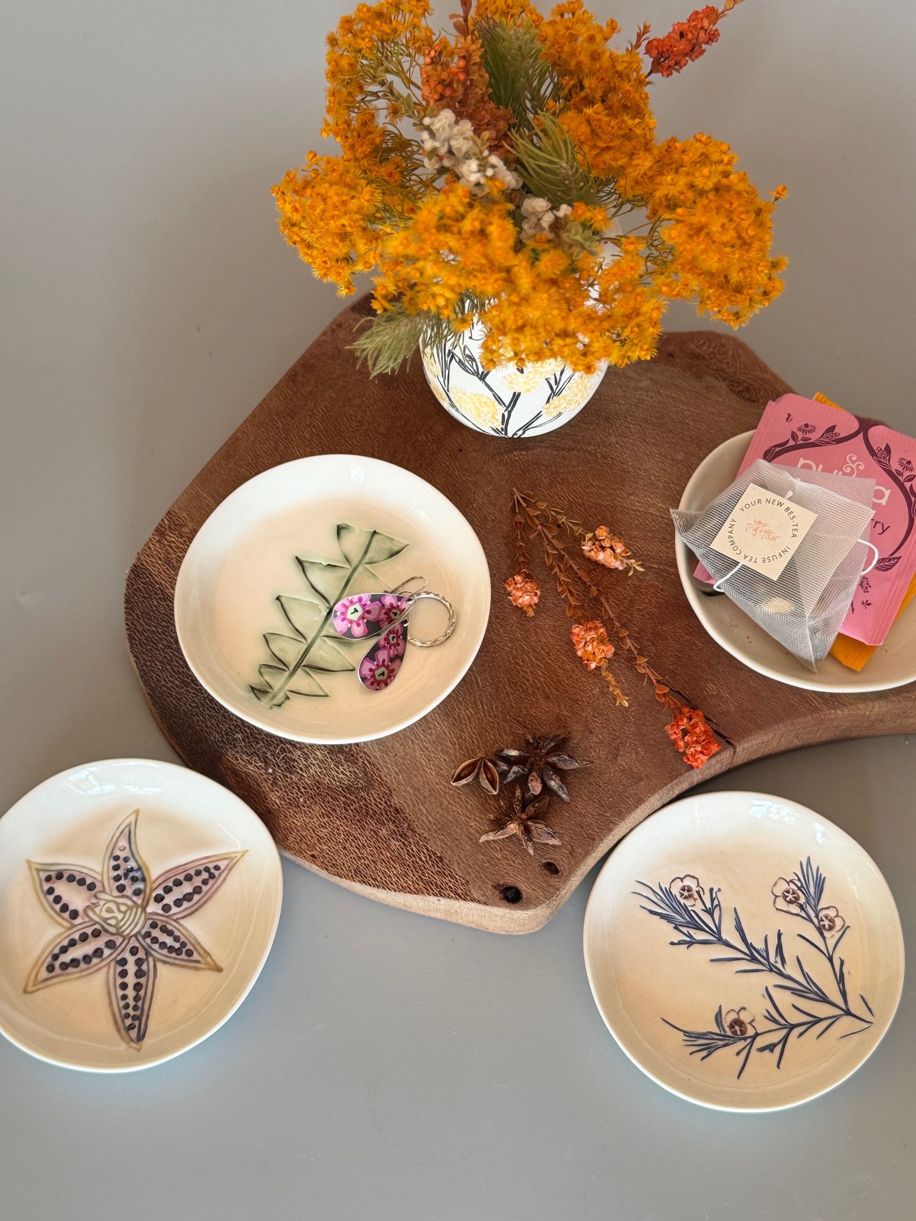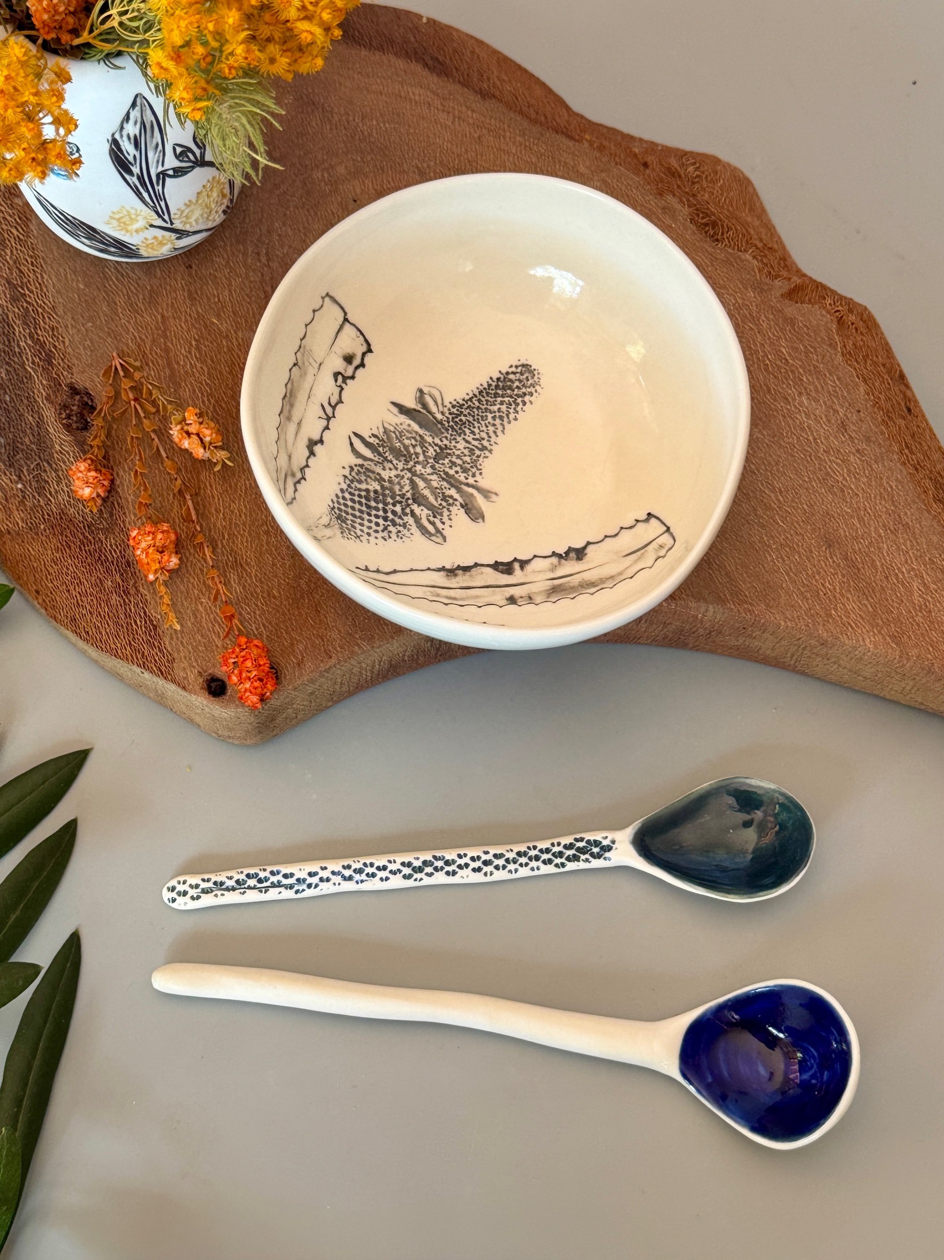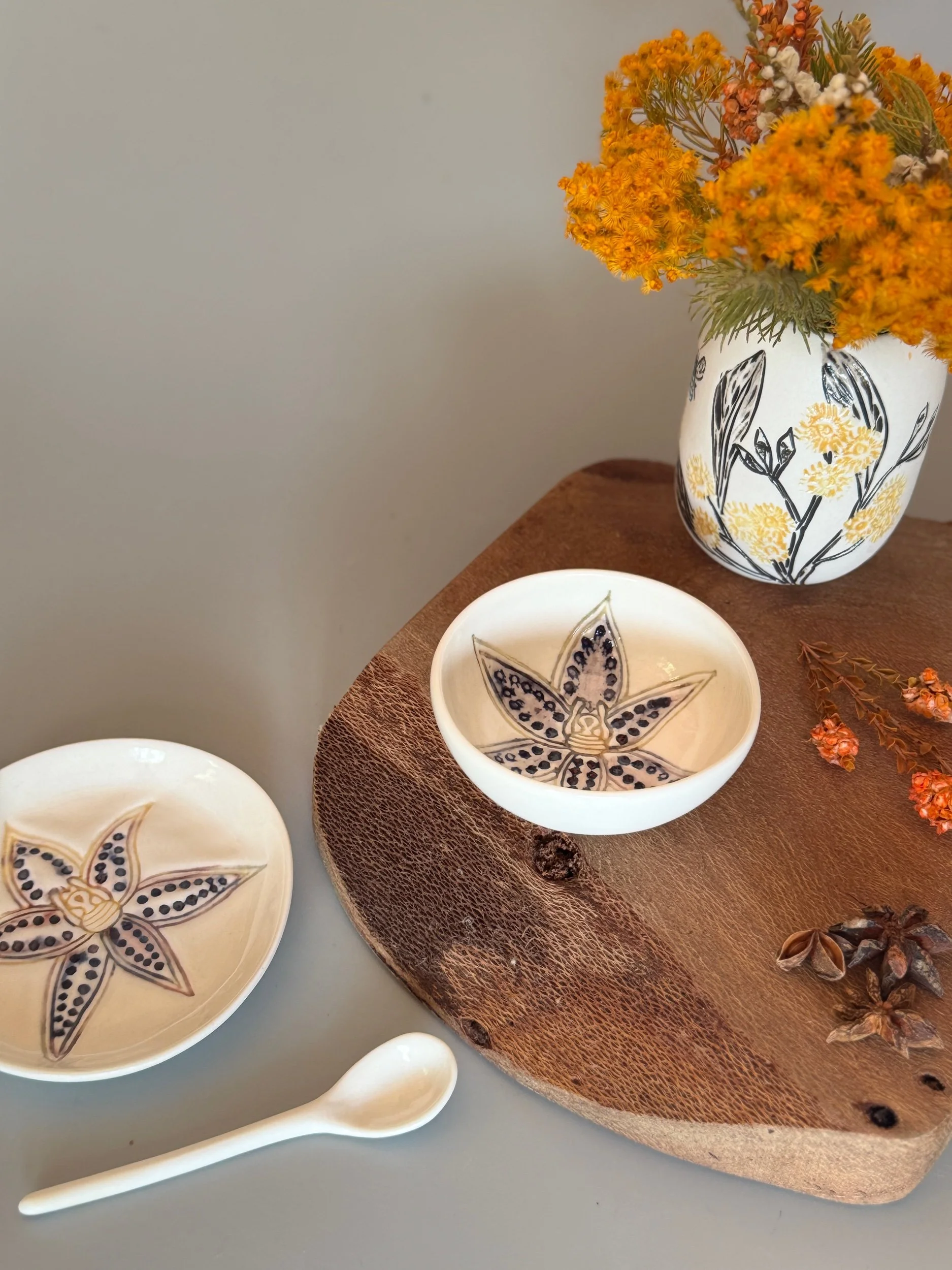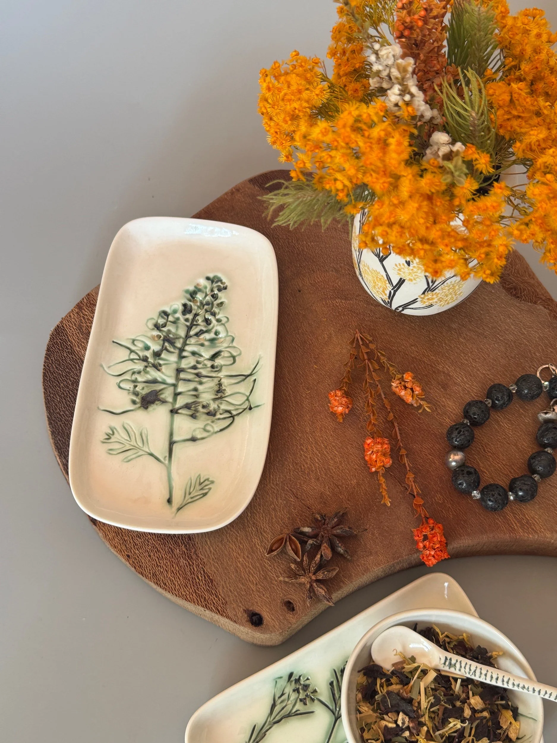 Tableware Categories: All Bespoke Pieces Custom Order Gift Voucher Homeware Tableware Workshops All / All Bespoke Pieces Custom Order Gift Voucher Homeware Tableware Workshops Quick View Splendid Fairy Wren Platters from $140.00 Sale Quick View Large Red Tail Black Cockatoo Serving Platter Sale Price: $252.00 Original Price: $280.00 Sold Out Quick View Red Tail Black Cockatoo Serving Platter Sale Price: $270.00 Original Price: $300.00 Sale Quick View Australian Ringneck - Sgraffito plates from $65.00 Quick View Australian Ringneck - Oval Platter and Bowls from $65.00 Quick View Carnaby's Black Cockatoo - Sgraffito plates from $65.00 Quick View Mug-Red Flowering Gum from $90.00 Quick View Mug- Botanical Mugs from $80.00 Quick View Mug- Wattle Sgraffito from $90.00 Quick View Mugs- Botanicals with birds from $80.00 Quick View Giant Spider Orchid Platters and Nibble bowl Sale Price: $220.00 Original Price: $295.00 Sale Quick View Large Donkey Orchid Serving Platter and Nibble bowl from $60.00 Sale Quick View Mini imprint plate from $35.00 Sale Quick View Eucalyptus Spice and Nibble Bowl with spoon $60.00 Quick View Salt or Pepper Spice Shaker Domes from $65.00 Quick View Mini Ring or Spice Bowl with Imprints from $13.00 Quick View Large Grevillea Serving Platter Sale Price: $250.00 Original Price: $280.00 Sale Quick View Imprint Rectangle Dishes from $45.00 Quick View Medium Pasta Bowl - Grevillea $95.00 Quick View Grevillea Plates from $50.00 Quick View Plates with Wattle imprints from $35.00 Quick View Plates with Kangaroo Paw imprints from $35.00 Quick View Plates and Bowls Banksia menziesii design from $50.00 Quick View Large Wattle Serving Platter Sale Price: $250.00 Original Price: $280.00 Sale Quick View Olive Spoons from $25.00 Quick View Spoons from $15.00 Quick View Cockatoo feather platter $180.00 Sold Out Quick View Carnaby's Black Cockatoo Platter - Small $180.00 Sold Out Quick View Mug- Banksia Sgraffito from $90.00 Sold Out