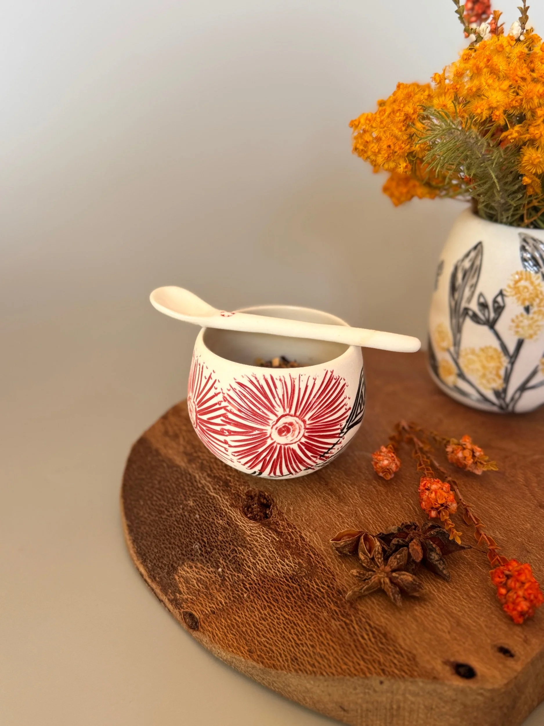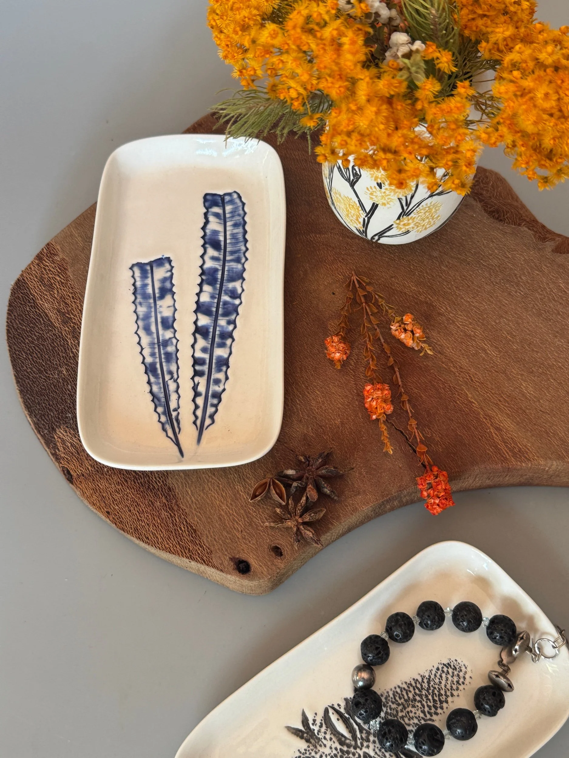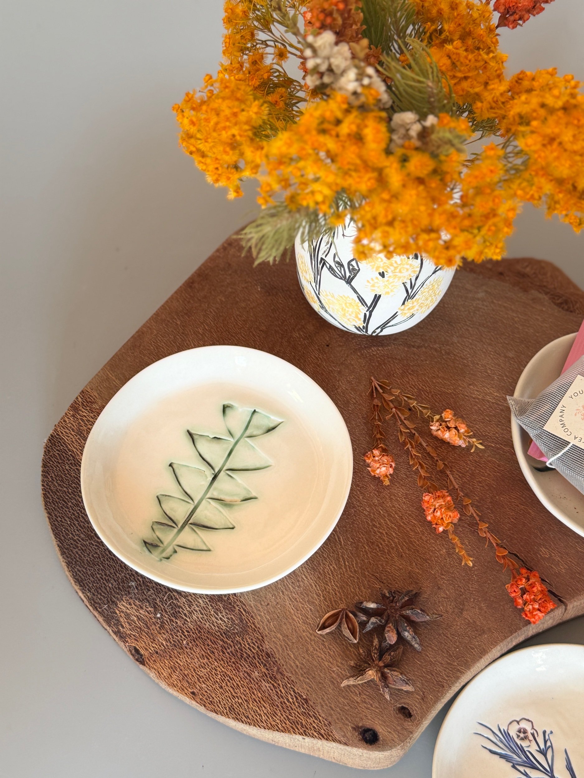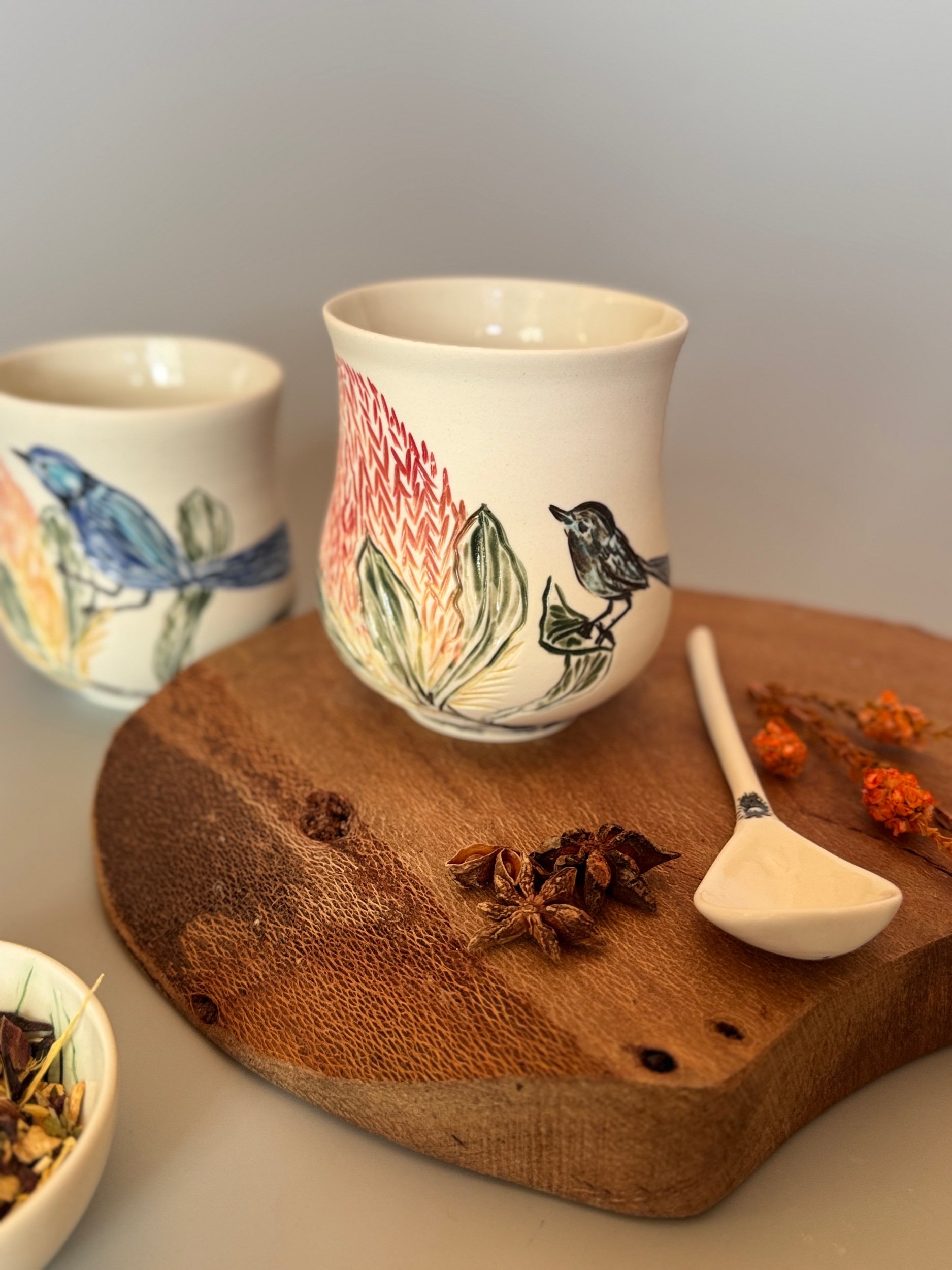 Tableware Categories: All Bespoke Pieces Custom Order Gift Voucher Homeware Tableware Workshops All / All Bespoke Pieces Custom Order Gift Voucher Homeware Tableware Workshops Quick View Splendid Fairy Wren Platters from $140.00 Sale Quick View Large Red Tail Black Cockatoo Serving Platter Sale Price: $252.00 Original Price: $280.00 Sold Out Quick View Red Tail Black Cockatoo Serving Platter Sale Price: $270.00 Original Price: $300.00 Sale Quick View Australian Ringneck - Sgraffito plates from $65.00 Quick View Australian Ringneck - Oval Platter and Bowls from $65.00 Quick View Carnaby's Black Cockatoo - Sgraffito plates from $65.00 Quick View Mug-Red Flowering Gum from $90.00 Quick View Mug- Botanical Mugs from $80.00 Quick View Mug- Wattle Sgraffito from $90.00 Quick View Mugs- Botanicals with birds from $80.00 Quick View Giant Spider Orchid Platters and Nibble bowl Sale Price: $220.00 Original Price: $295.00 Sale Quick View Large Donkey Orchid Serving Platter and Nibble bowl from $60.00 Sale Quick View Mini imprint plate from $35.00 Sale Quick View Eucalyptus Spice and Nibble Bowl with spoon $60.00 Quick View Salt or Pepper Spice Shaker Domes from $65.00 Quick View Mini Ring or Spice Bowl with Imprints from $13.00 Quick View Large Grevillea Serving Platter Sale Price: $250.00 Original Price: $280.00 Sale Quick View Imprint Rectangle Dishes from $45.00 Quick View Medium Pasta Bowl - Grevillea $95.00 Quick View Grevillea Plates from $50.00 Quick View Plates with Wattle imprints from $35.00 Quick View Plates with Kangaroo Paw imprints from $35.00 Quick View Plates and Bowls Banksia menziesii design from $50.00 Quick View Large Wattle Serving Platter Sale Price: $250.00 Original Price: $280.00 Sale Quick View Olive Spoons from $25.00 Quick View Spoons from $15.00 Quick View Cockatoo feather platter $180.00 Sold Out Quick View Carnaby's Black Cockatoo Platter - Small $180.00 Sold Out Quick View Mug- Banksia Sgraffito from $90.00 Sold Out
