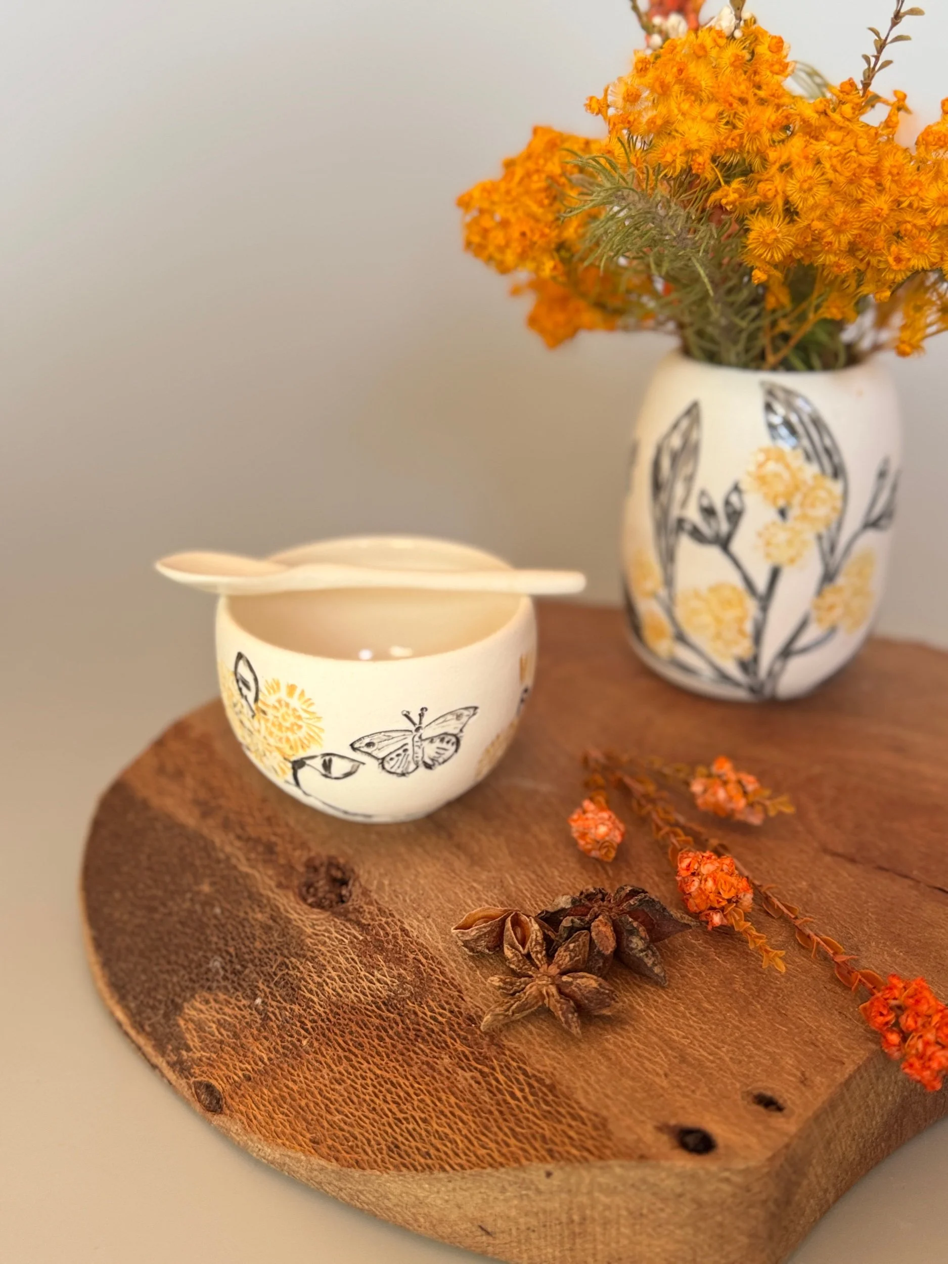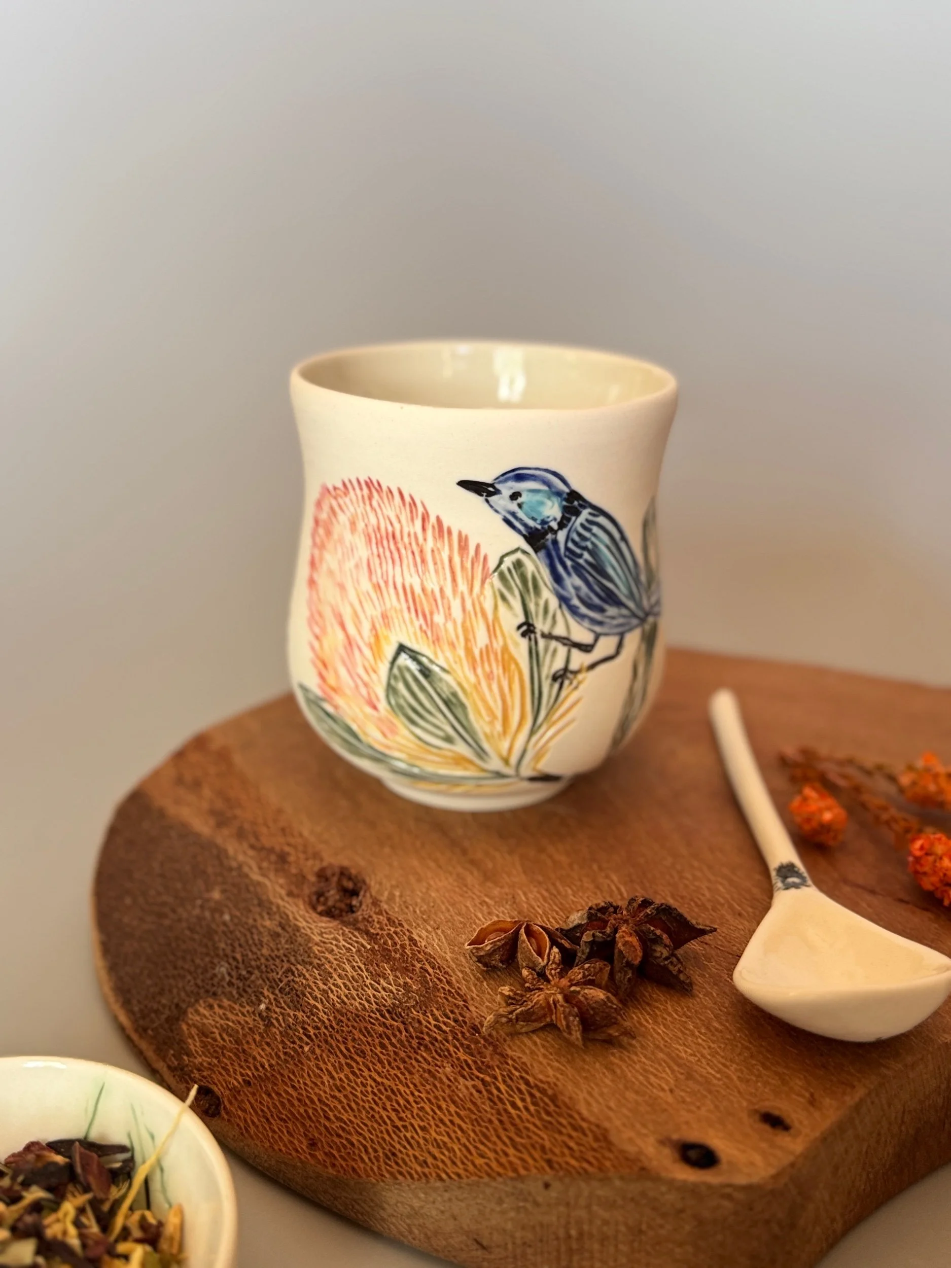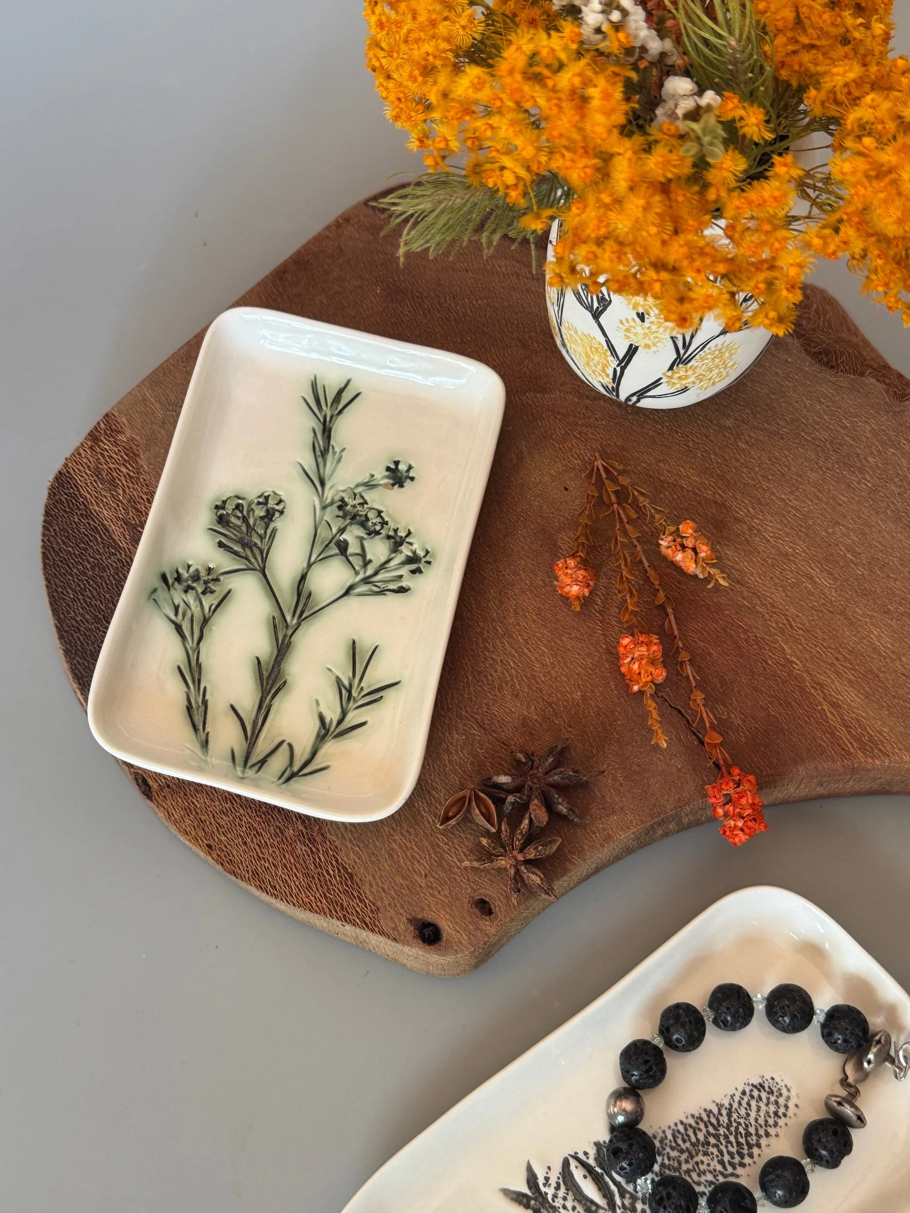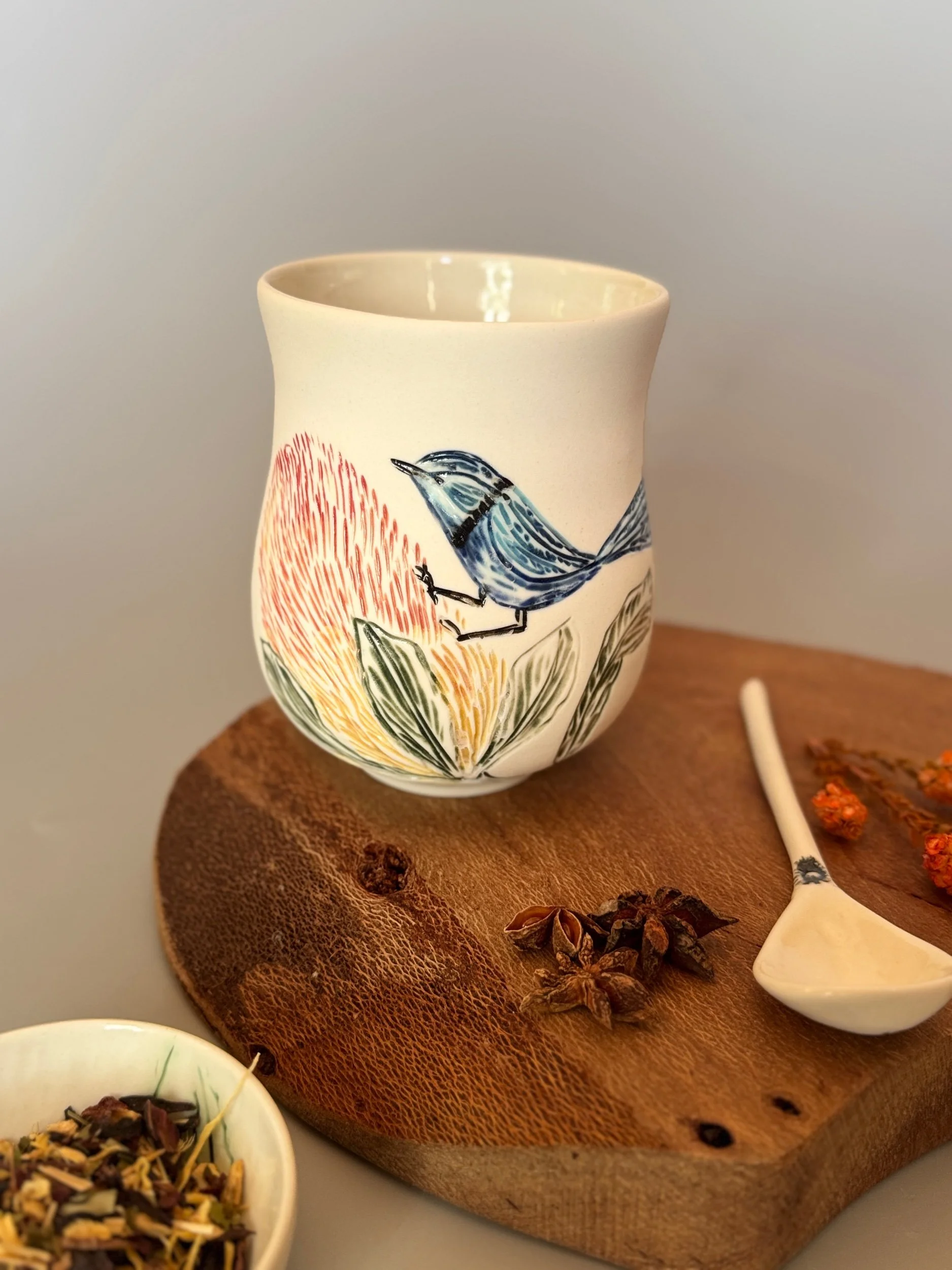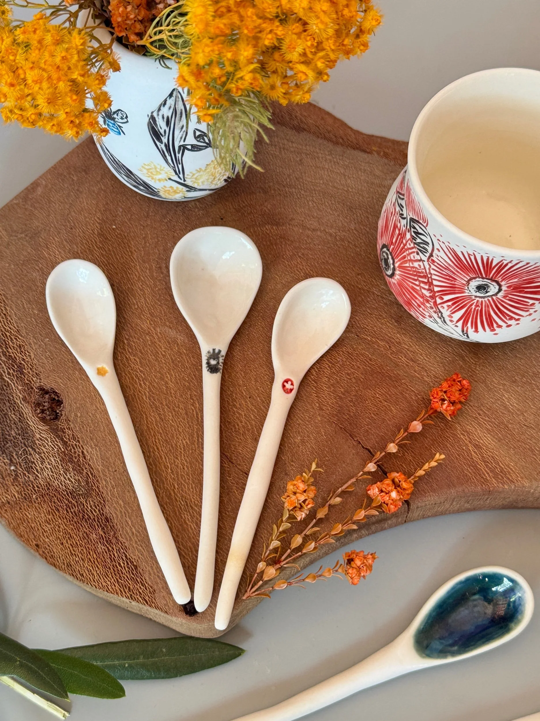 Tableware Categories: All Bespoke Pieces Custom Order Gift Voucher Homeware Tableware Workshops All / All Bespoke Pieces Custom Order Gift Voucher Homeware Tableware Workshops Quick View Splendid Fairy Wren Platters from $140.00 Sale Quick View Large Red Tail Black Cockatoo Serving Platter Sale Price: $252.00 Original Price: $280.00 Sold Out Quick View Red Tail Black Cockatoo Serving Platter Sale Price: $270.00 Original Price: $300.00 Sale Quick View Australian Ringneck - Sgraffito plates from $65.00 Quick View Australian Ringneck - Oval Platter and Bowls from $65.00 Quick View Carnaby's Black Cockatoo - Sgraffito plates from $65.00 Quick View Mug-Red Flowering Gum from $90.00 Quick View Mug- Botanical Mugs from $80.00 Quick View Mug- Wattle Sgraffito from $90.00 Quick View Mugs- Botanicals with birds from $80.00 Quick View Giant Spider Orchid Platters and Nibble bowl Sale Price: $220.00 Original Price: $295.00 Sale Quick View Large Donkey Orchid Serving Platter and Nibble bowl from $60.00 Sale Quick View Mini imprint plate from $35.00 Sale Quick View Eucalyptus Spice and Nibble Bowl with spoon $60.00 Quick View Salt or Pepper Spice Shaker Domes from $65.00 Quick View Mini Ring or Spice Bowl with Imprints from $13.00 Quick View Large Grevillea Serving Platter Sale Price: $250.00 Original Price: $280.00 Sale Quick View Imprint Rectangle Dishes from $45.00 Quick View Medium Pasta Bowl - Grevillea $95.00 Quick View Grevillea Plates from $50.00 Quick View Plates with Wattle imprints from $35.00 Quick View Plates with Kangaroo Paw imprints from $35.00 Quick View Plates and Bowls Banksia menziesii design from $50.00 Quick View Large Wattle Serving Platter Sale Price: $250.00 Original Price: $280.00 Sale Quick View Olive Spoons from $25.00 Quick View Spoons from $15.00 Quick View Cockatoo feather platter $180.00 Sold Out Quick View Carnaby's Black Cockatoo Platter - Small $180.00 Sold Out Quick View Mug- Banksia Sgraffito from $90.00 Sold Out