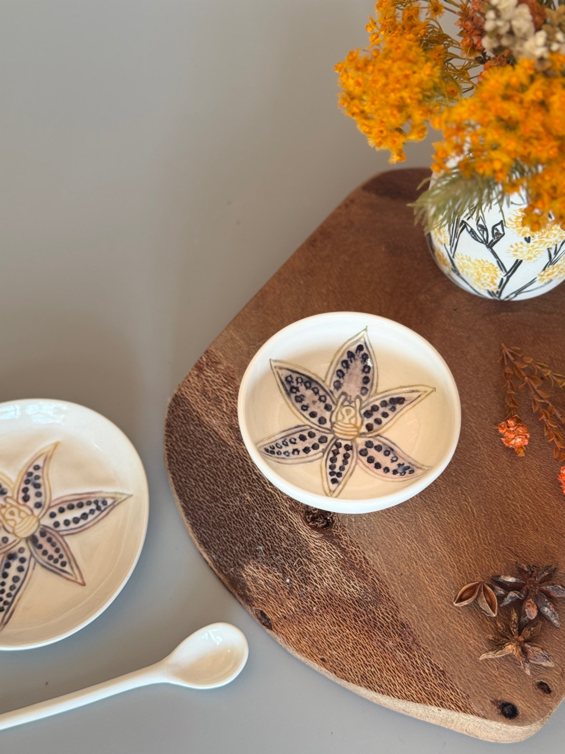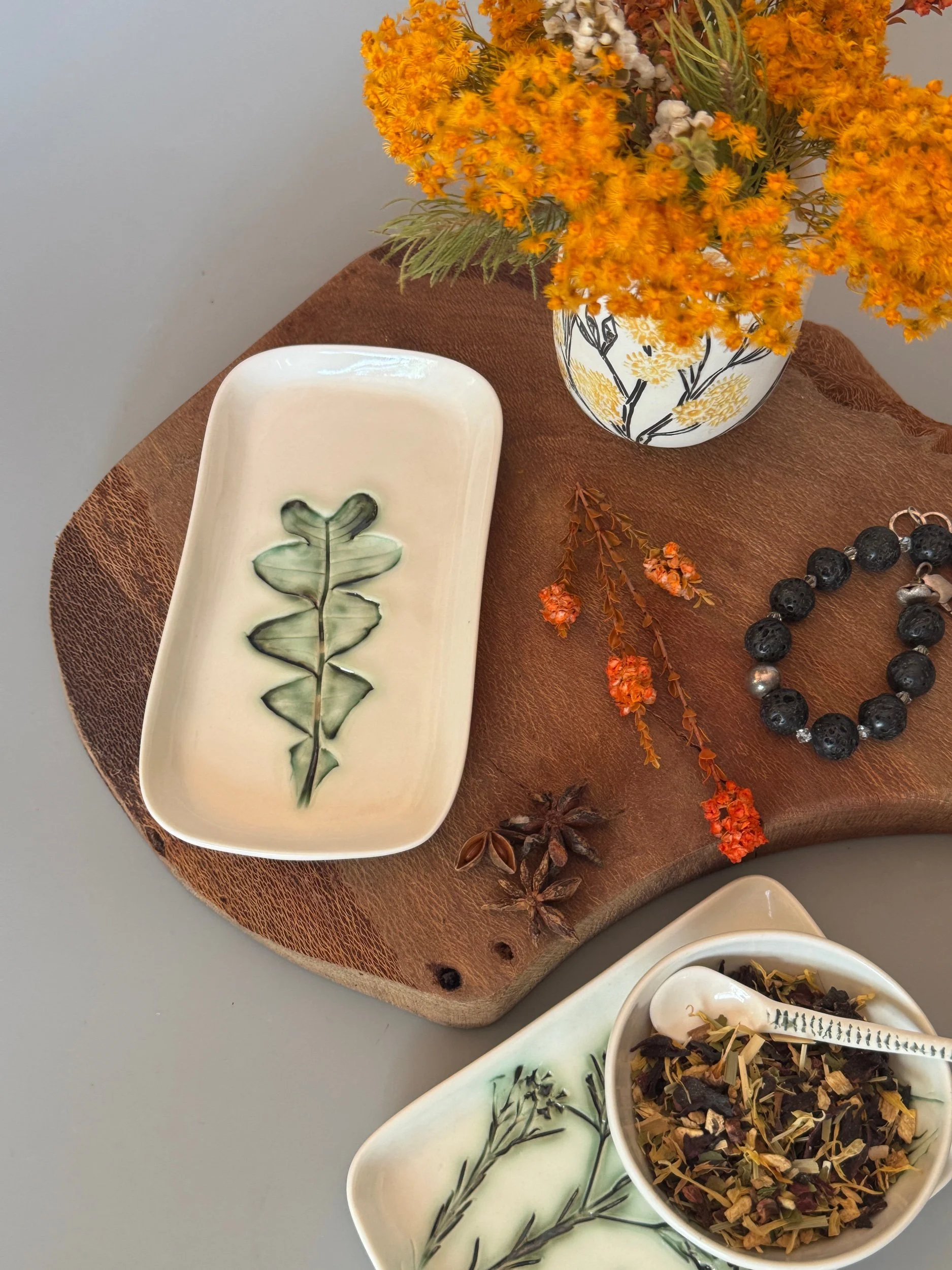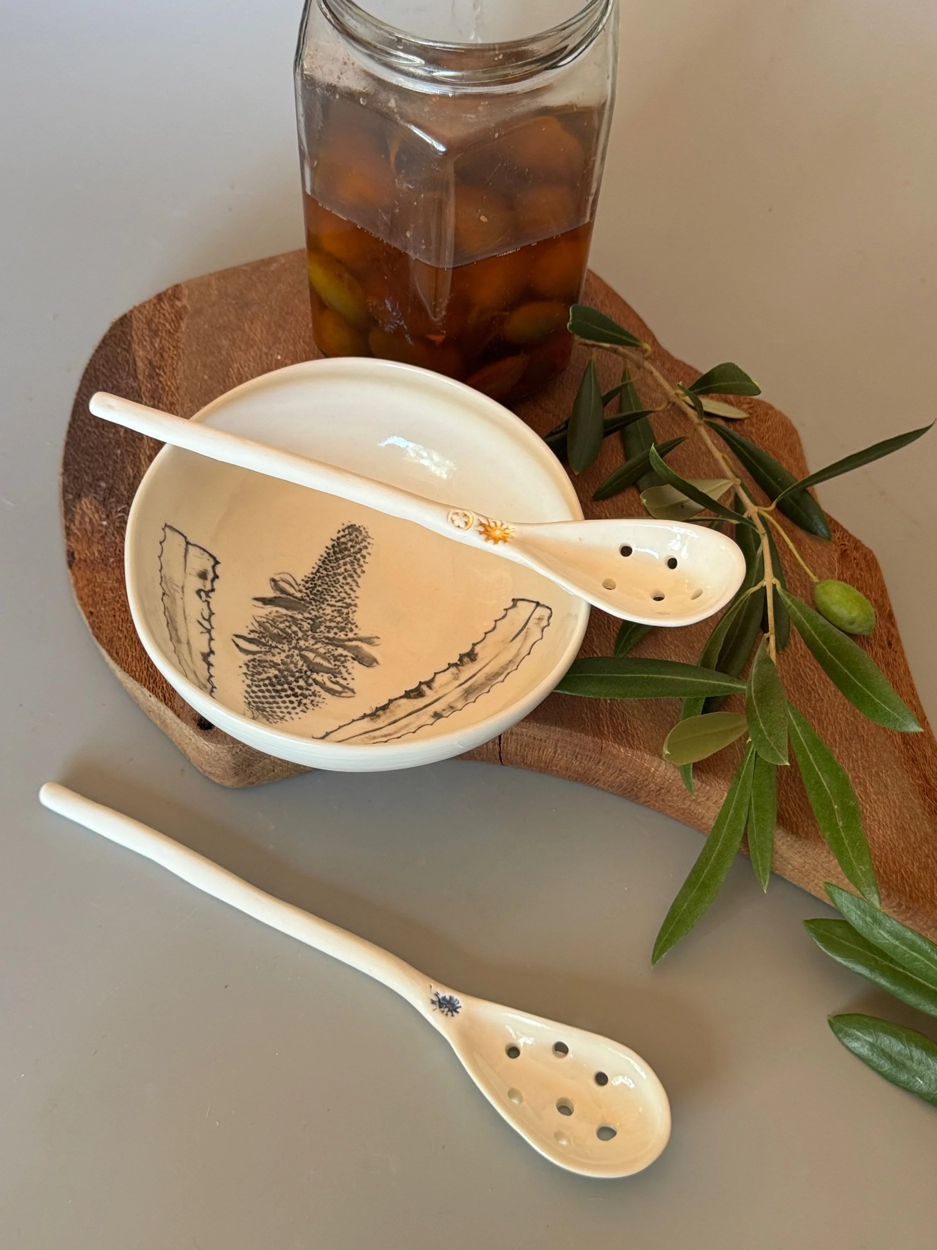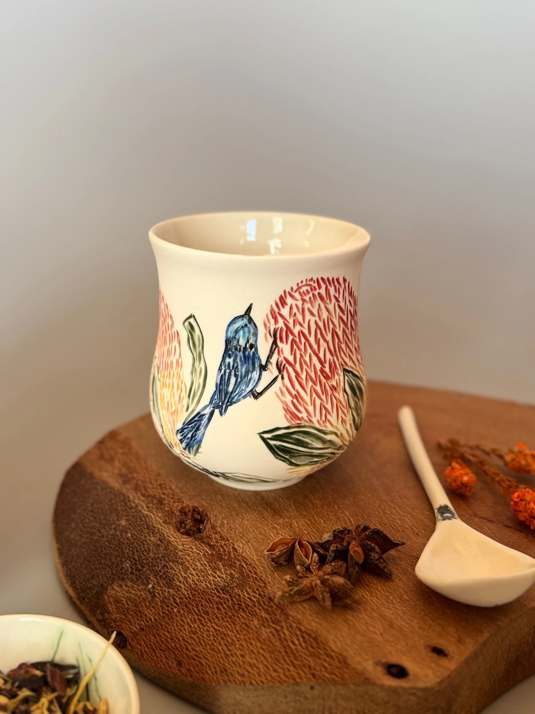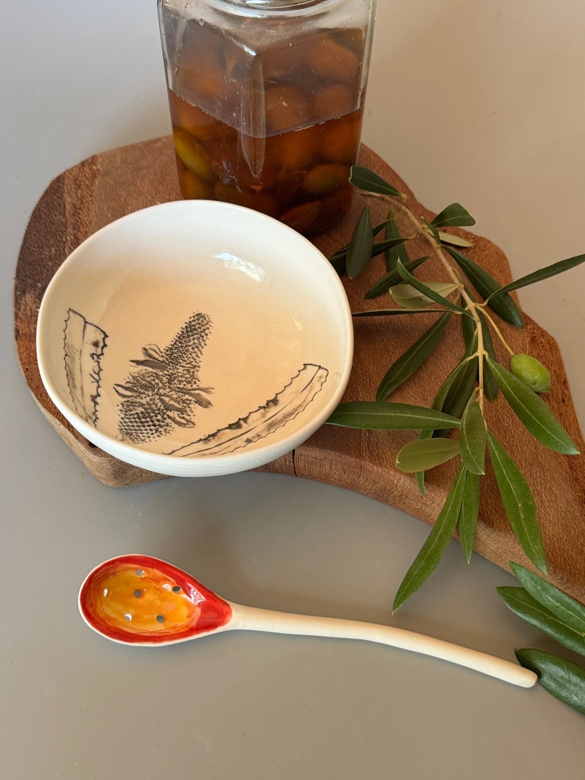 Tableware Categories: All Bespoke Pieces Custom Order Gift Voucher Homeware Tableware Workshops All / All Bespoke Pieces Custom Order Gift Voucher Homeware Tableware Workshops Quick View Splendid Fairy Wren Platters from $140.00 Sale Quick View Large Red Tail Black Cockatoo Serving Platter Sale Price: $252.00 Original Price: $280.00 Sold Out Quick View Red Tail Black Cockatoo Serving Platter Sale Price: $270.00 Original Price: $300.00 Sale Quick View Australian Ringneck - Sgraffito plates from $65.00 Quick View Australian Ringneck - Oval Platter and Bowls from $65.00 Quick View Carnaby's Black Cockatoo - Sgraffito plates from $65.00 Quick View Mug-Red Flowering Gum from $90.00 Quick View Mug- Botanical Mugs from $80.00 Quick View Mug- Wattle Sgraffito from $90.00 Quick View Mugs- Botanicals with birds from $80.00 Quick View Giant Spider Orchid Platters and Nibble bowl Sale Price: $220.00 Original Price: $295.00 Sale Quick View Large Donkey Orchid Serving Platter and Nibble bowl from $60.00 Sale Quick View Mini imprint plate from $35.00 Sale Quick View Eucalyptus Spice and Nibble Bowl with spoon $60.00 Quick View Salt or Pepper Spice Shaker Domes from $65.00 Quick View Mini Ring or Spice Bowl with Imprints from $13.00 Quick View Large Grevillea Serving Platter Sale Price: $250.00 Original Price: $280.00 Sale Quick View Imprint Rectangle Dishes from $45.00 Quick View Medium Pasta Bowl - Grevillea $95.00 Quick View Grevillea Plates from $50.00 Quick View Plates with Wattle imprints from $35.00 Quick View Plates with Kangaroo Paw imprints from $35.00 Quick View Plates and Bowls Banksia menziesii design from $50.00 Quick View Large Wattle Serving Platter Sale Price: $250.00 Original Price: $280.00 Sale Quick View Olive Spoons from $25.00 Quick View Spoons from $15.00 Quick View Cockatoo feather platter $180.00 Sold Out Quick View Carnaby's Black Cockatoo Platter - Small $180.00 Sold Out Quick View Mug- Banksia Sgraffito from $90.00 Sold Out